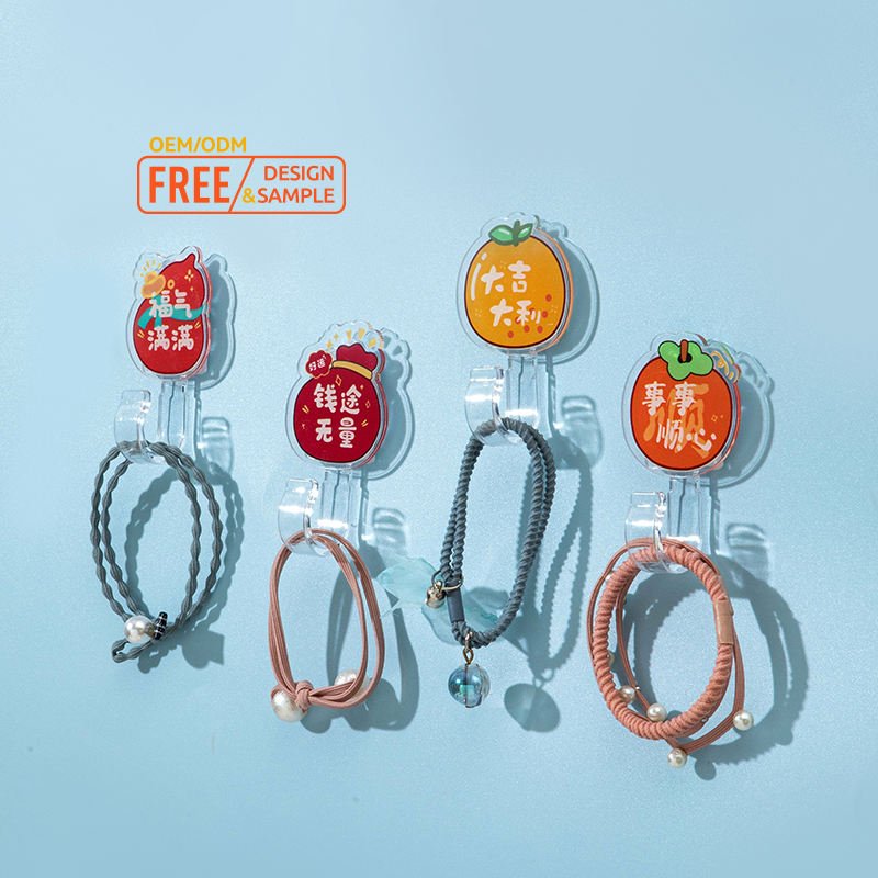 Custom Cute Cartoon Pattern Seamless Wall Hooks Transparent Acrylic Plastic Kitchen Bathroom Crafts Wholesale