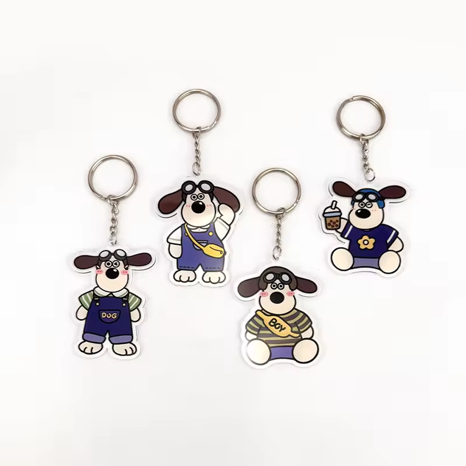 Wholesale Custom Cute Dog UV Printing Mini Bag Charm Personalized Cartoon Anime Plastic Keychain